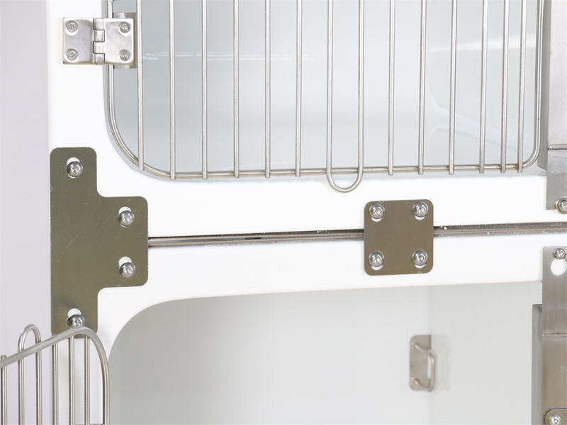 Ante ianuam amovibilem a cardine valido appensum reponi per diaphanum acrylicum ostium potuit et caveam in stationem oxygenii transformare.