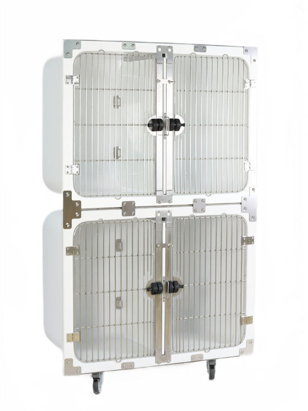 Basis reticulum, lance vastum, partitio centralis, fasciae reticulum quadrans, perlucidum ostium cum thermometris/hygrometris, aulaeum fabricae, bases castorei omnium magnitudinum, fistulae aquae metallicae et exercituum in variis longitudinibus, cubitis et articulis. Cagea veterinarii fibreglass Waterproof Modularis canis amplus amplitudo accessionum auget caveam functionis ad diversa requisita occurrentia. Praesto est in amygdalo et albo finitur.